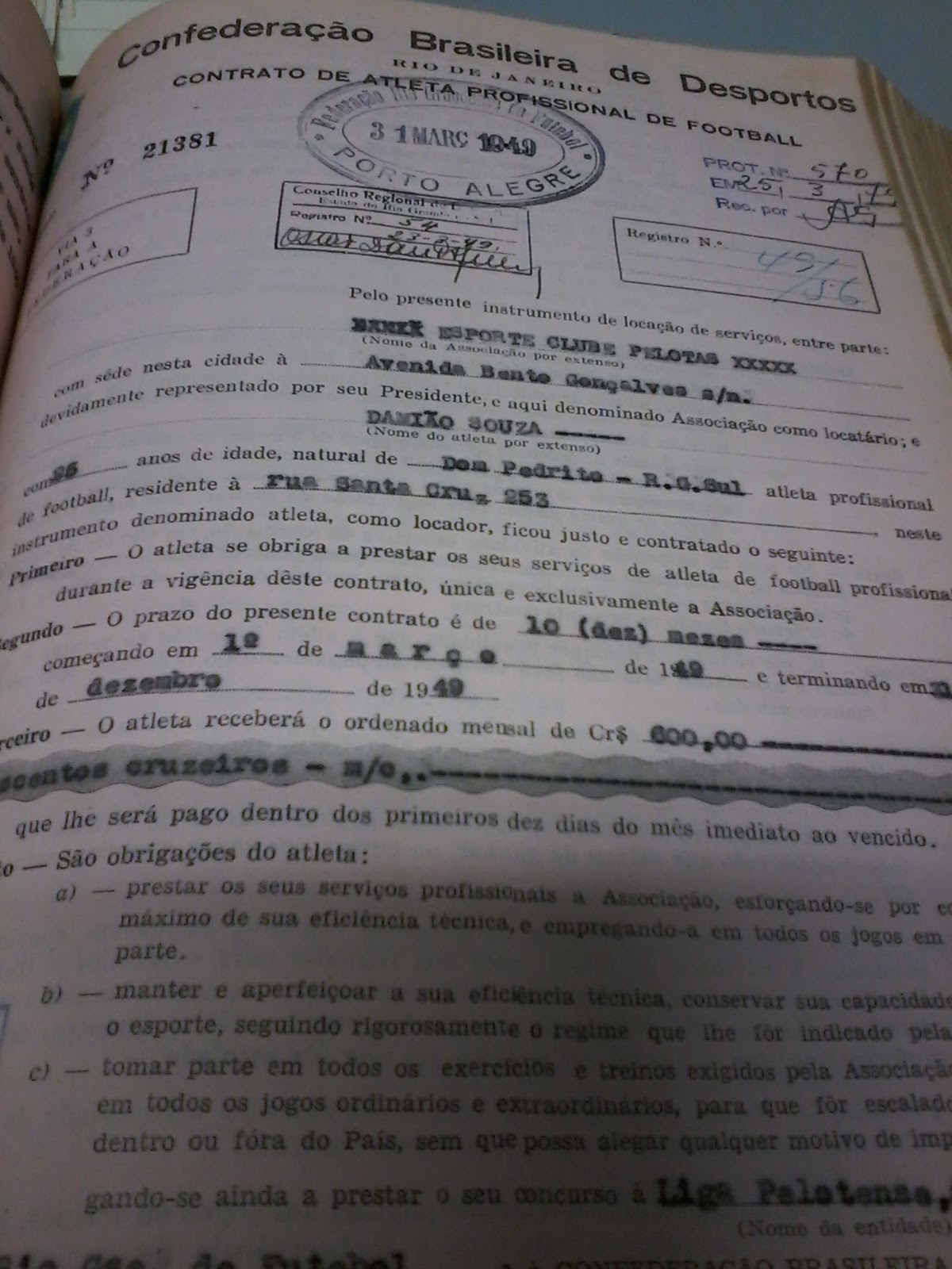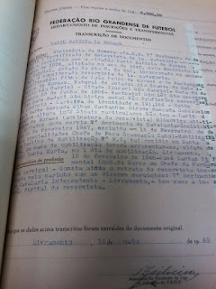 Pesquisa no acerto da Federação Gaúcha de Futebol, contatos de atletas no ano de 1949.